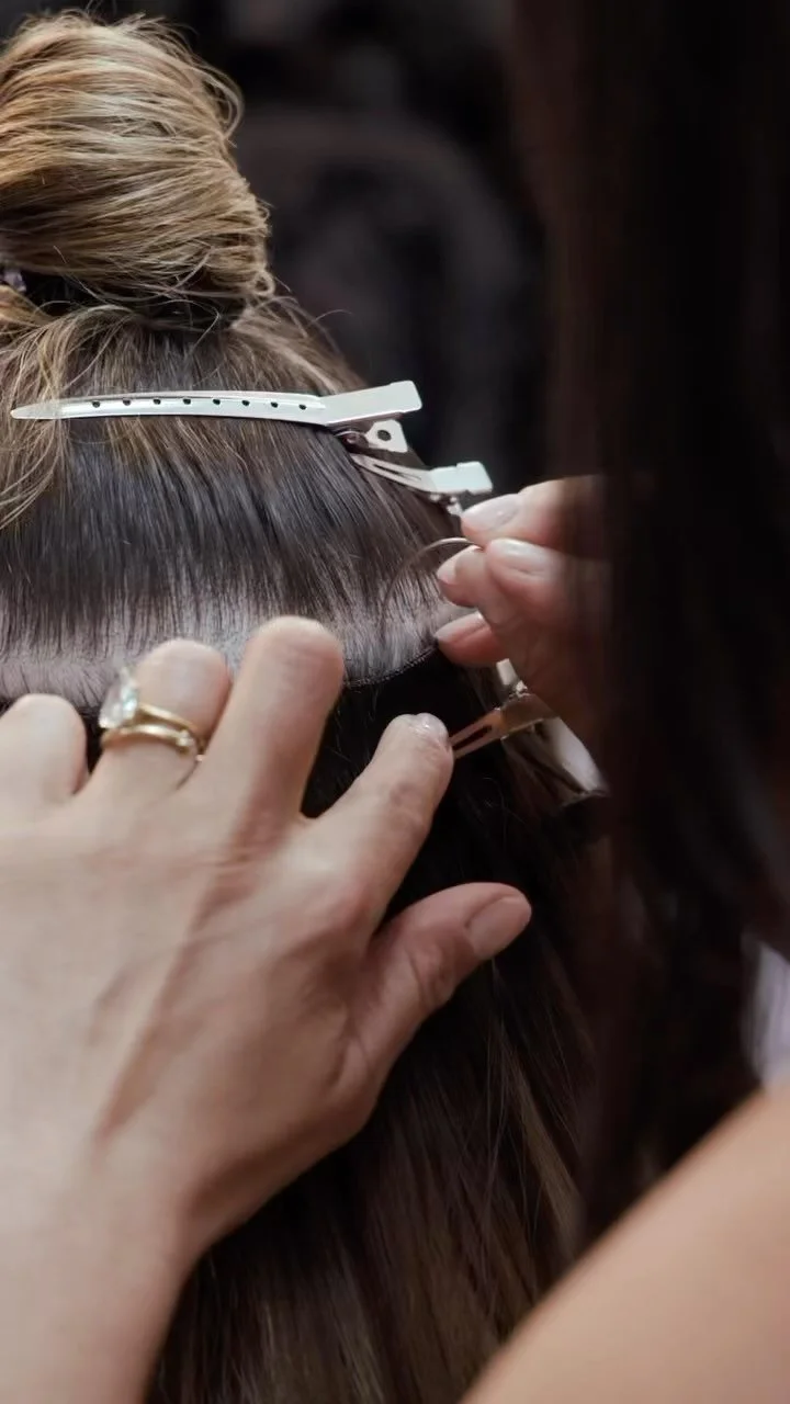 Sewn and Scissored is a luxury hair studio located in Downtown Delray Beach specializing in hand-tied, hand-sewn hair extensions.